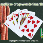 Jaarlijkse droge worstenkaarting van KSK Snaaskerke. Het is bijna terug zover. Op vrijdag 14 november gaat de jaarlijkse kaarting door ten voordele van onze club. We verwachten jullie allen, met vrienden en familie in onze kantine die avond - vanaf 19.00 uur. Een gezellige avond, een tafeltje kaarten, een pintje (of iets anders ) pakken . In de loop van de avond gaat terug onze fantastische TOMBOLA door met een 15 à 20 mooie prijzen, waaronder de traditionele Gedroogde hesp. 4 kaarten geven immers recht op 2 pakjes van elk 4 droge worstjes. De prijs per kaart bedraagt 2,50 euro. ( dus 10 euro voor 2 pakjes droge worstjes ). Kaarten te bekomen bij onze spelers en bestuur. Het helpt de sportieve werking van onze vereniging.
